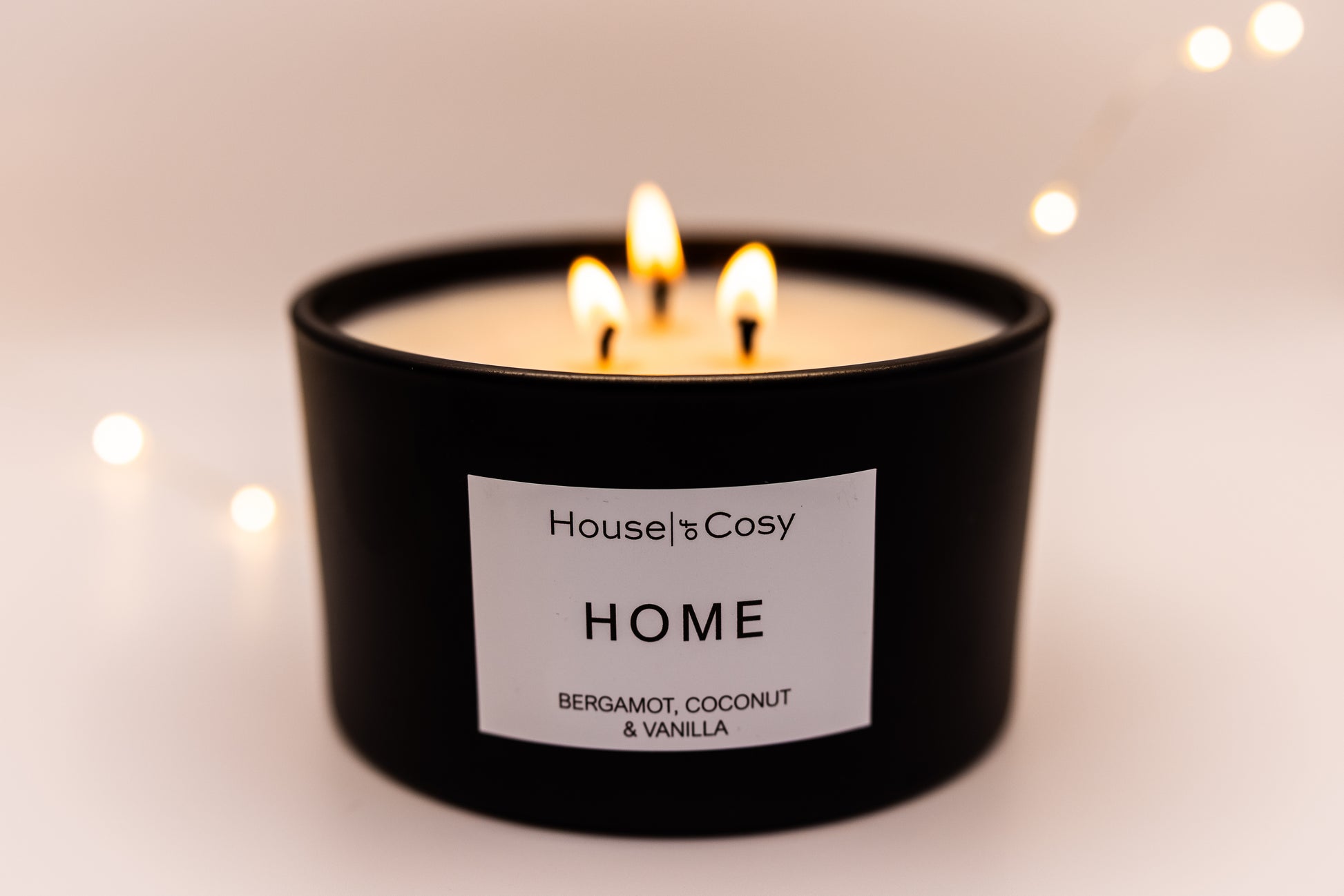 Elevate your home ambience with our eco-friendly soy wax candle, crafted with sustainability in mind. Our 3-wick home candle features a delightful blend of bergamot, coconut, and vanilla, housed in a sleek black matte jar for a touch of elegance and luxury.